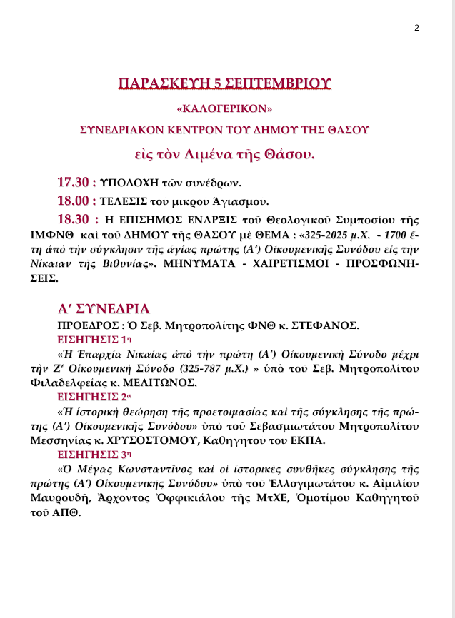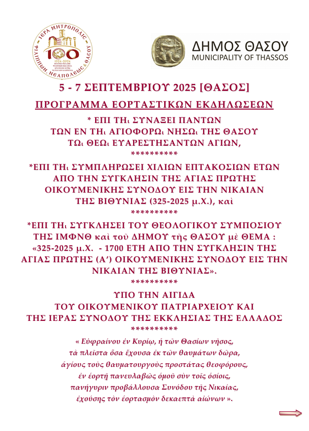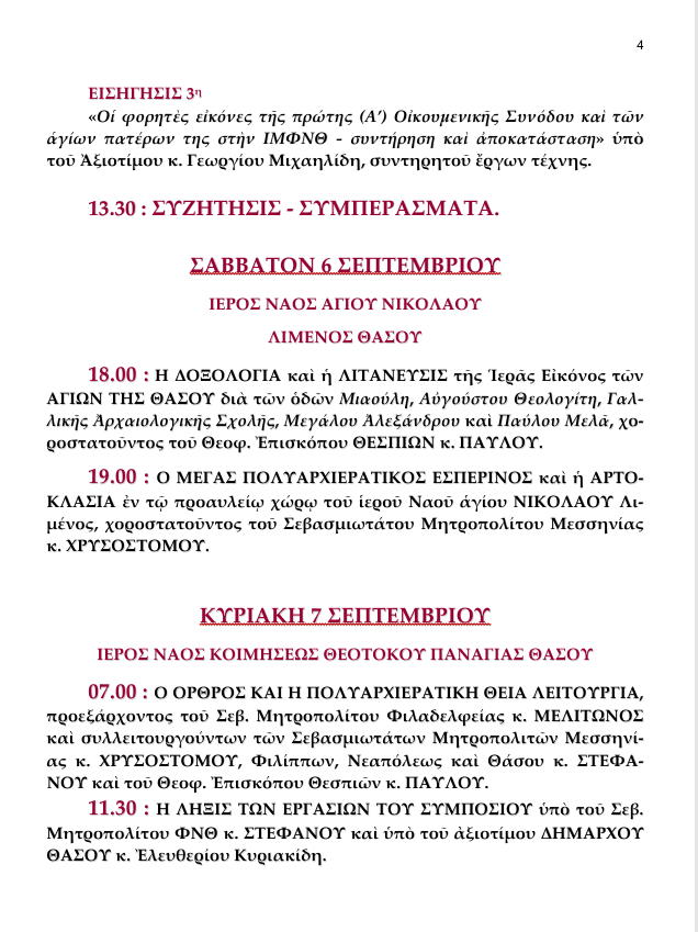 Εκδηλώσεις εν όψει του εορτασμού της Σύναξης των Αγίων της Θάσου