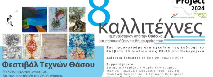 Στα πλαίσια του Φεστιβάλ Τεχνών Θάσου, με την υποστήριξη του Δήμου Θάσου και της Περιφέρειας Ανατολικής Μακεδονίας και Θράκης διοργανώνεται με την παράλληλη στήριξη του περιοδικού Fresh Thassos Stories και την βοήθεια του προέδρου της Ένωσης Ξενοδόχων Θάσου κ. Πάρι Παρασχούδη, το πρώτο Thassos Art Project με την συμμετοχή 8καταξιωμένων Ελλήνων...